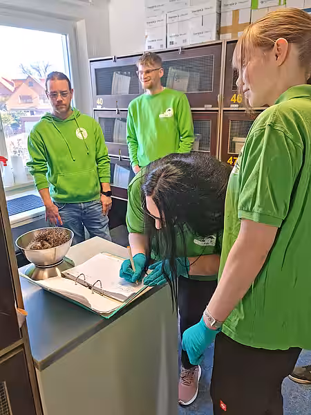 Auch die praktische Arbeit kam nicht zu kurz: Tierpflegerin Jana zeigte, wie die Igelboxen gereinigt werden – und die Gäste durften selbst mit anpacken und einige unserer Patienten wiegen. Ein spannender Moment für alle Beteiligten.