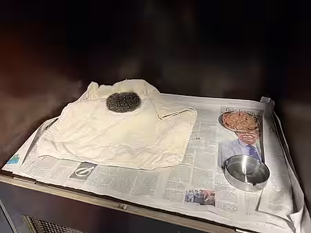 Bei der Untersuchung wurde festgestellt, dass der Igel sehr klein und schlapp sowie unterkühlt war. Mittels Hautfaltentest wurde außerdem schnell sichtbar, dass der Igel dehydriert war. Eine mit zwei Fingern hochgezogene Hautfalte soll innerhalb von 2 Sekunden wieder vertreichen, das war bei diesem kleinen Igel jedoch nicht der Fall.