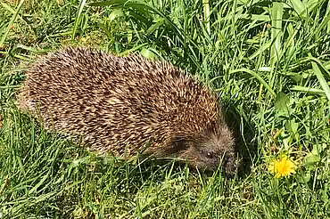 Dieser durchnässte die ganze Bauchseite der Igelin, so dass sie auch noch kalt wurde. Nach einer erneuten Befragung einer Tierärztin, die ein Antibiotikum verordnete und einer Woche in häuslicher Pflege ging es mit dem Gewicht wieder aufwärts, und Hopes Bauch ist schön trocken, weil die übermäßige Schleimbildung aufgehört hat. Frau Rissmann wird also bald einen neuen Versuch starten, Hope ins Freigehege zu setzen. Wir hoffen alle sehr, dass sich so etwas nicht wiederholt und dass das Leben im Freien von nun an Hopes Abwehrkräfte aktiviert. Eine gänzliche Auswilderung halten wir aber, u. a. nach Rücksprache mit etlichen Igelsachverständigen, nicht für sinnvoll. Zu leicht könnte es zu einer aufsteigenden Atemwegsinfektion kommen, bei der dann niemand mehr Hope helfen würde. Sie darf bei Frau Rissmann im Freigehege bleiben und bekommt ja vielleicht im nächsten Jahr männliche Gesellschaft.