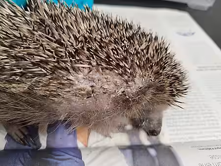 Er musste in einer Werkstatt befreit werden, so sehr hatte sich das Tier eingeklemmt. Bei uns in der Igelstation stellen wir fest, dass sein rechtes Vorderbein verletzt und er stark unterkühlt sowie dehydriert war. Nach ein paar Tagen Schmerzmittel und Antibiose sieht sah es aber schon deutlich besser aus.