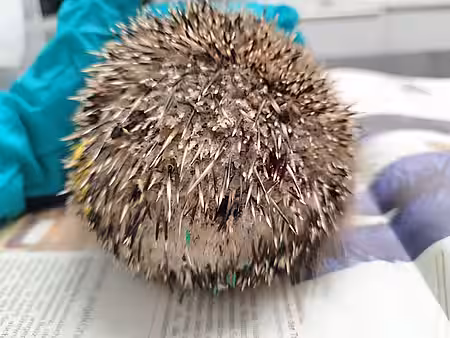 Igel steckt in Autoreifen fest