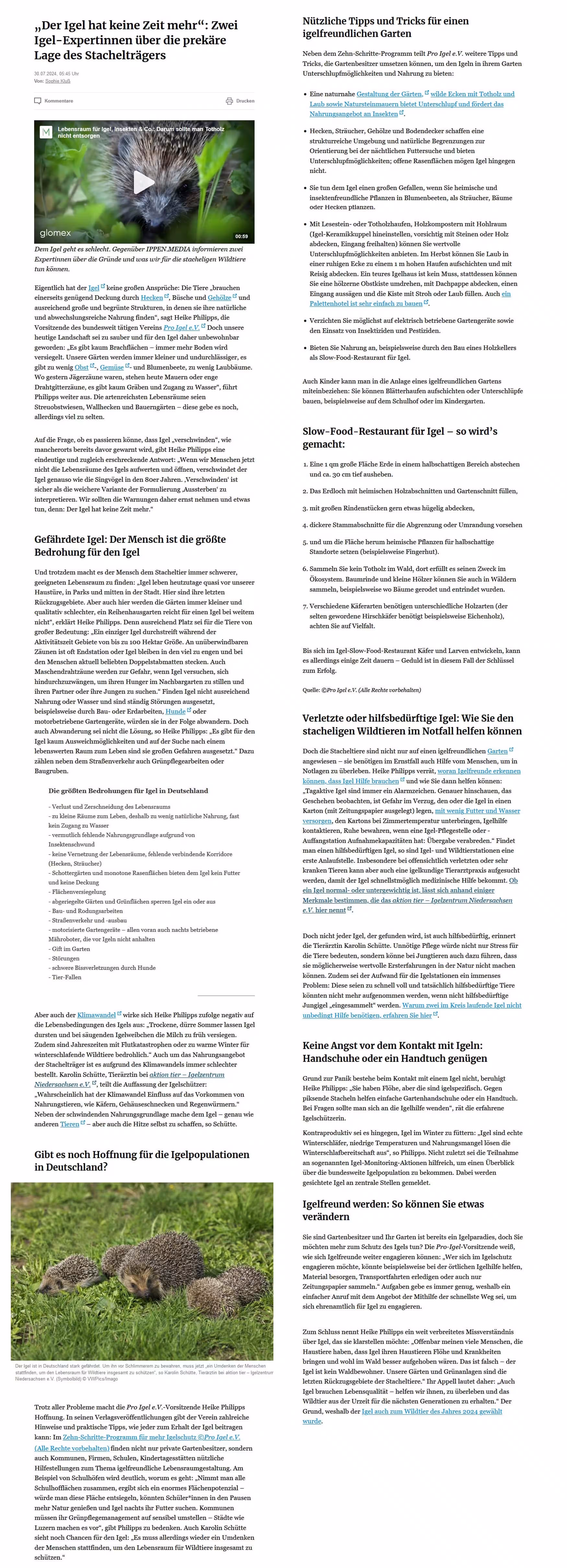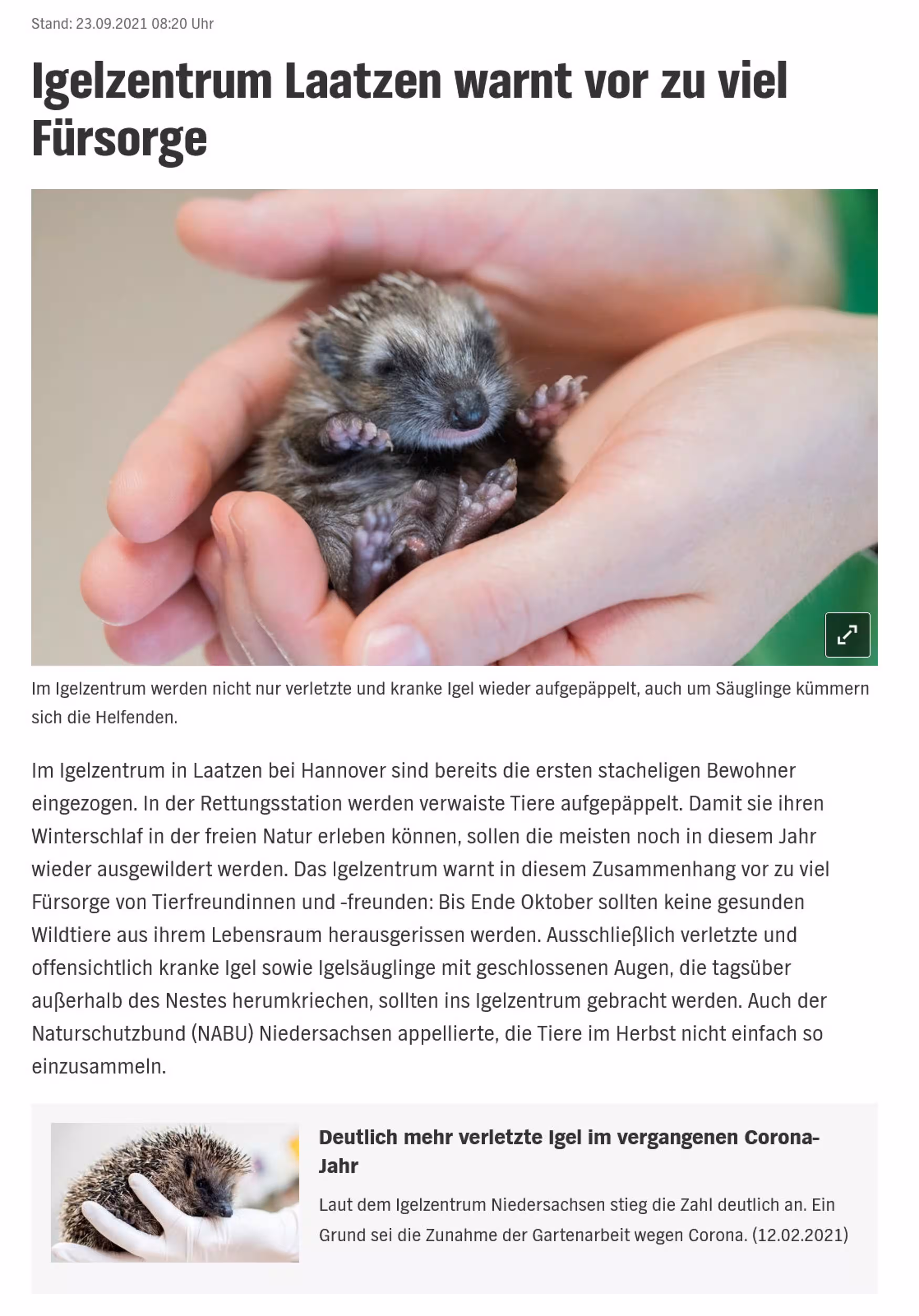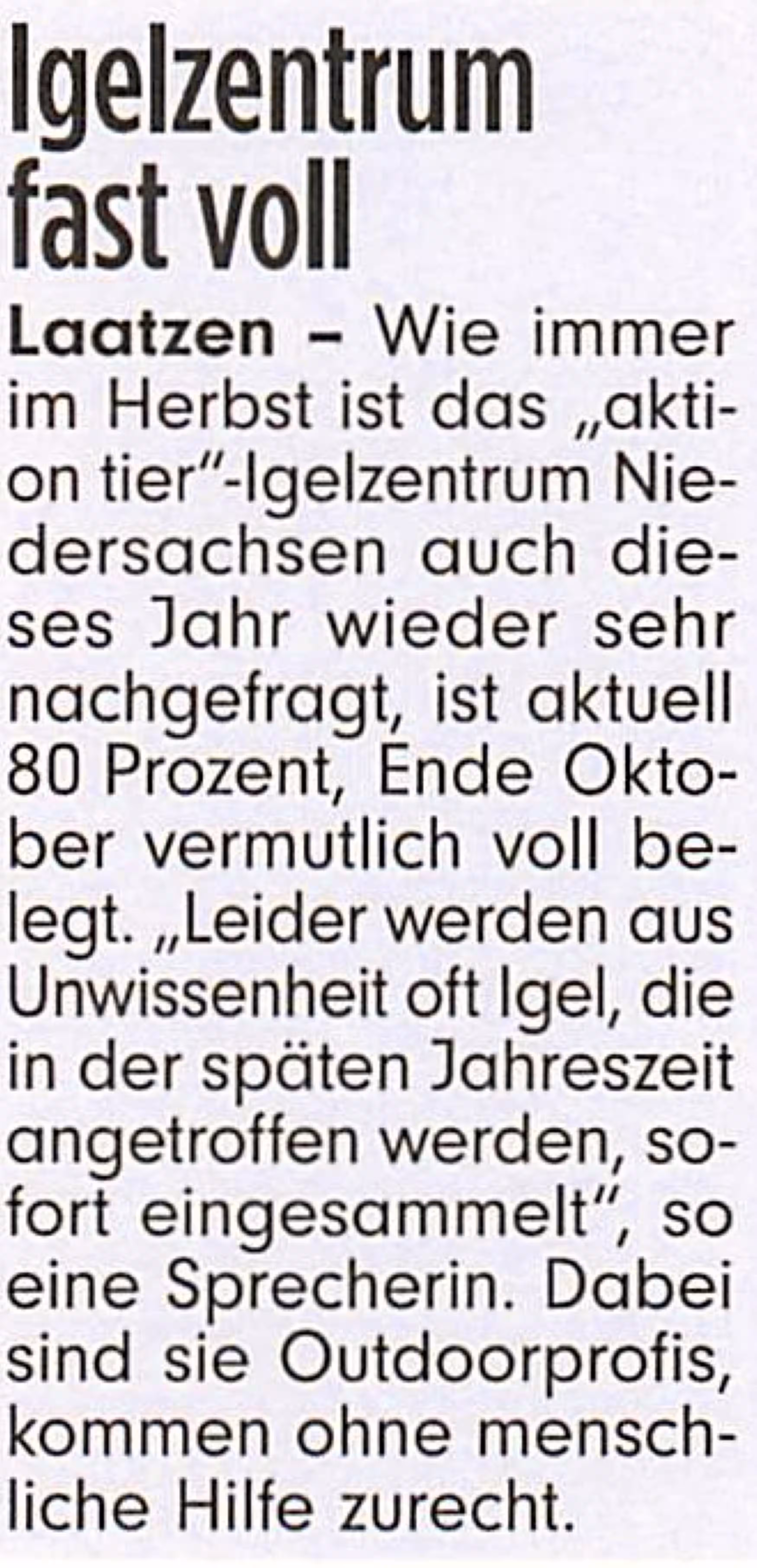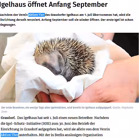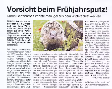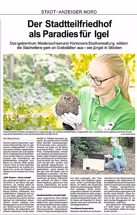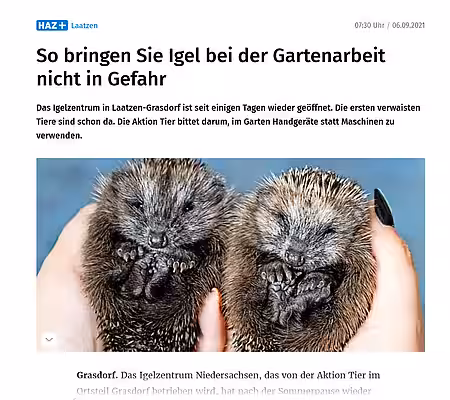 Beitrag über das aktion tier Igelzentrum in der HAZ vom 22.08.2025