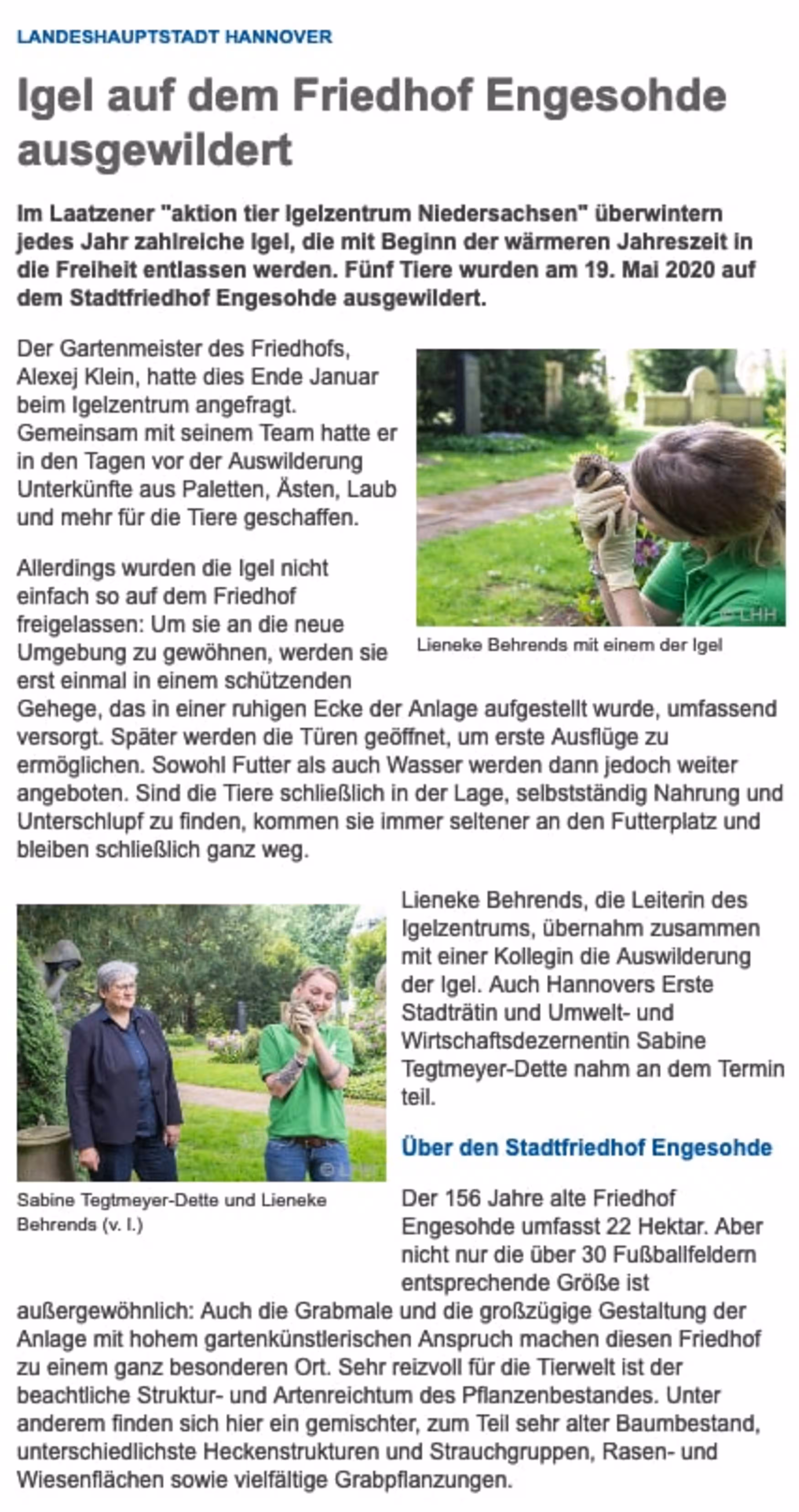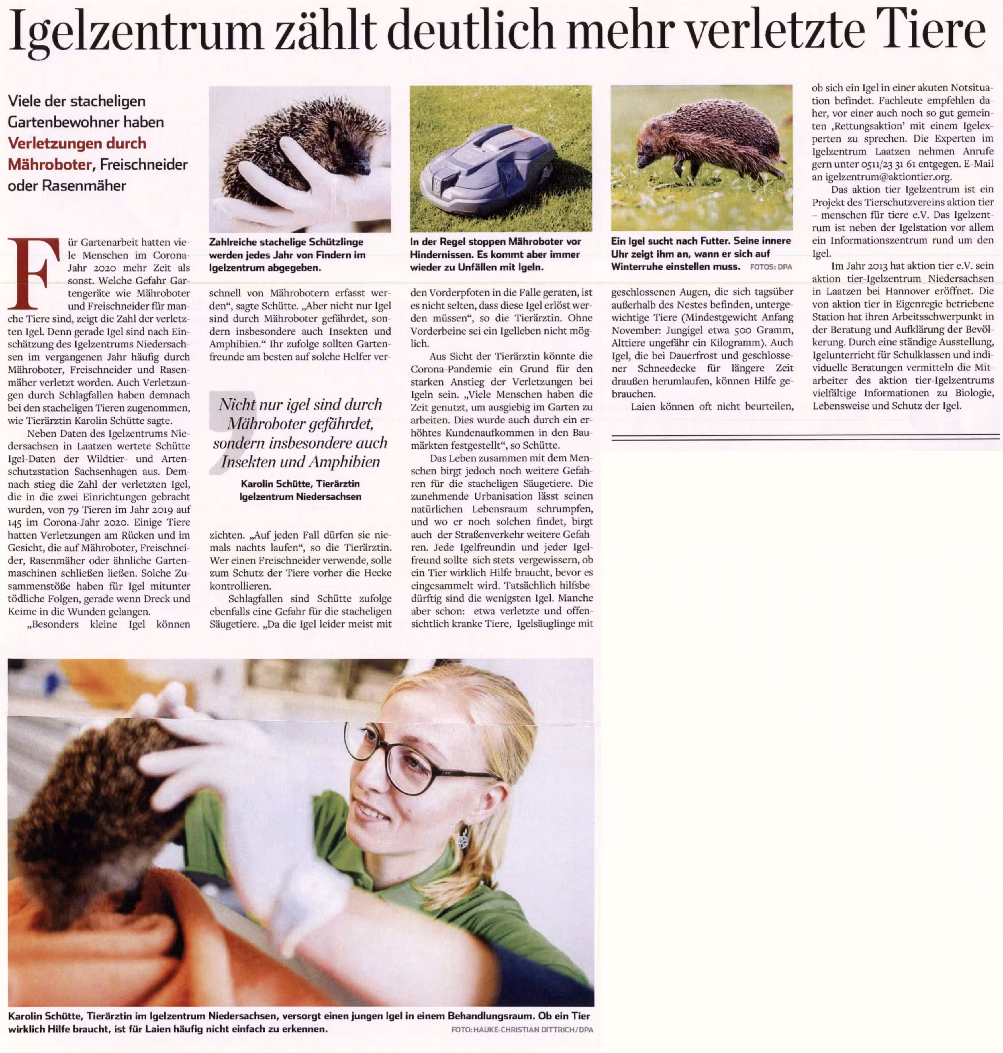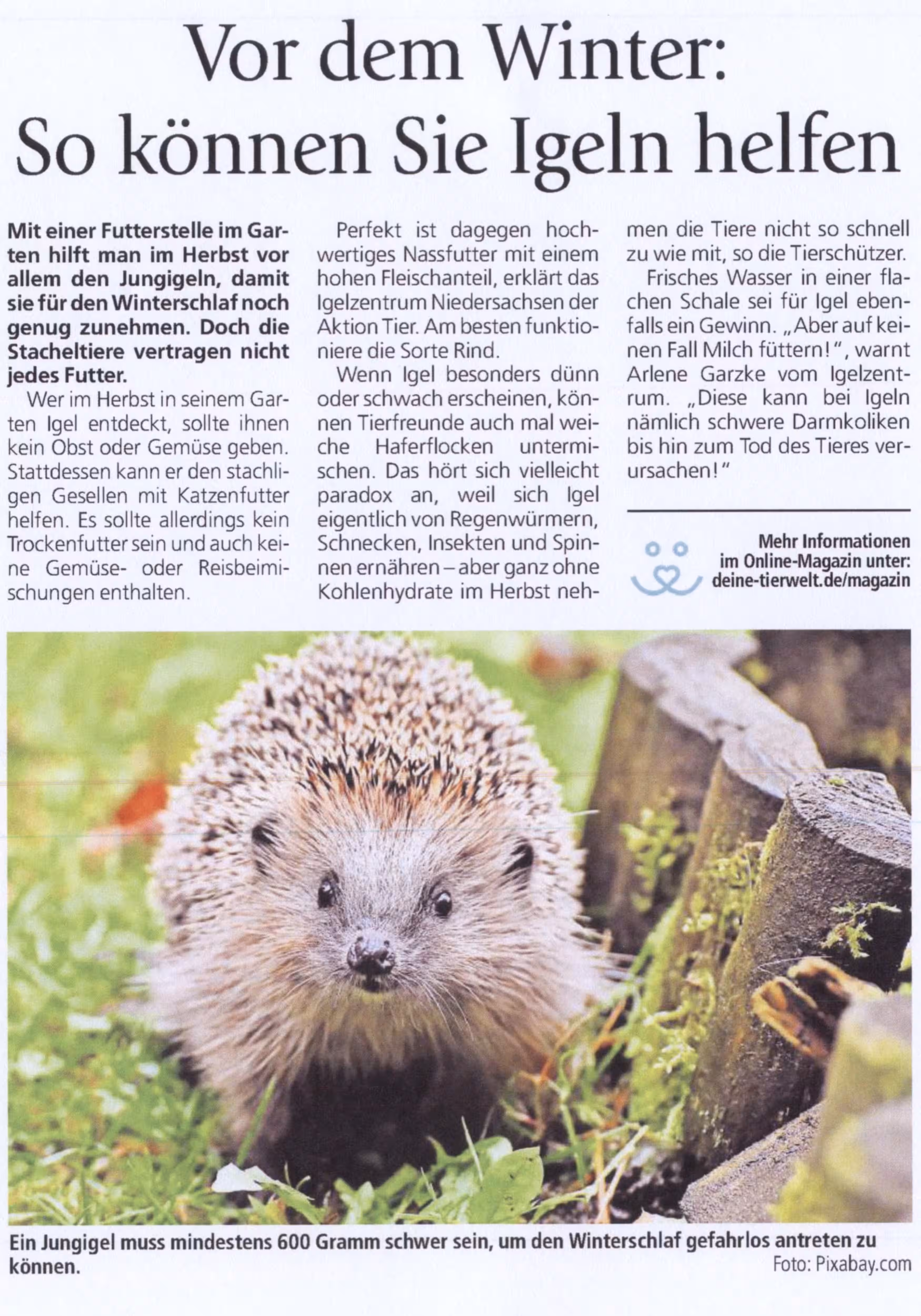 Beitrag über das aktion tier Igelzentrum in der HAZ vom 22.08.2025