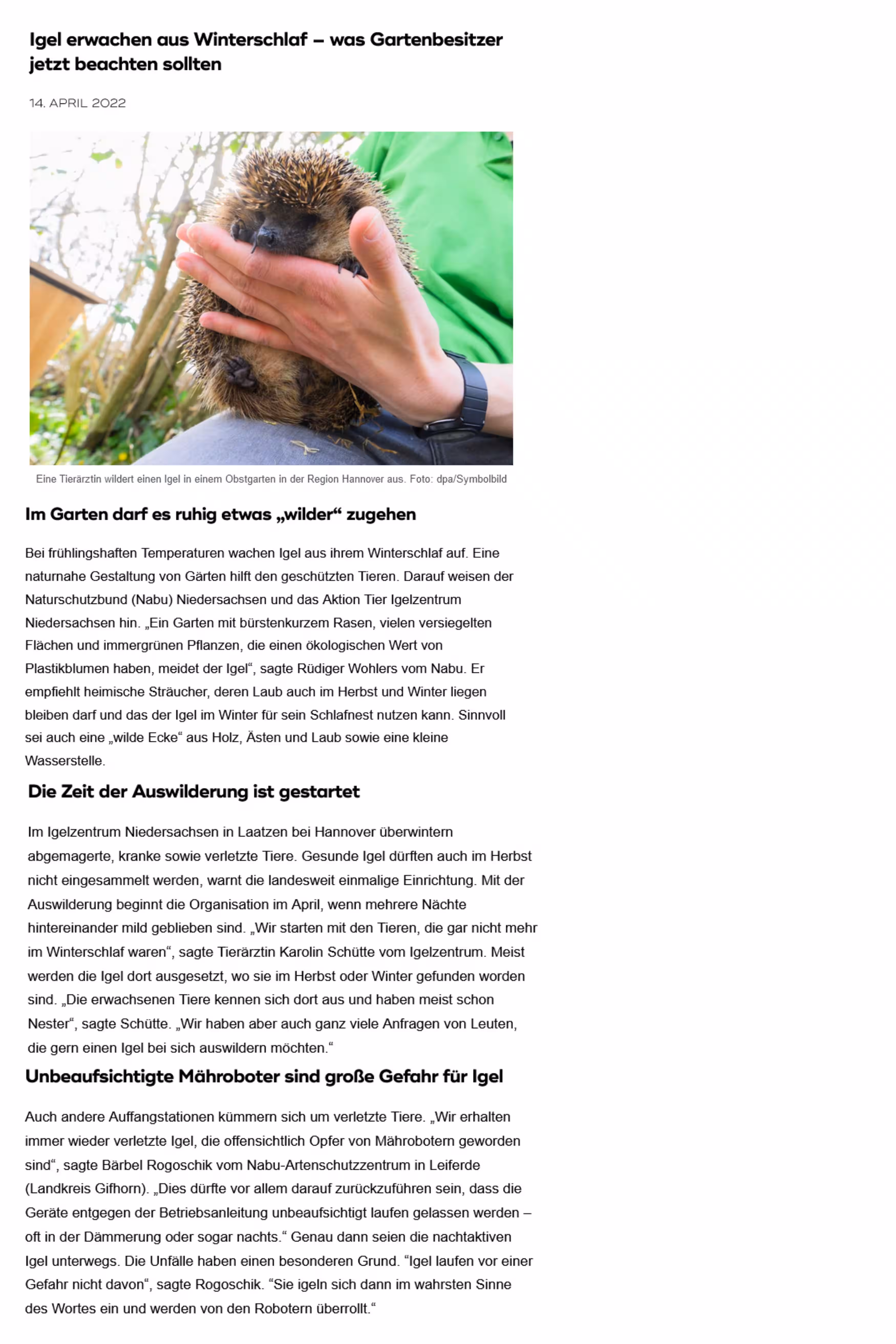 22.08.2025 | HAZ | Sind Mähroboter für Igel wirklich so gefährlich?